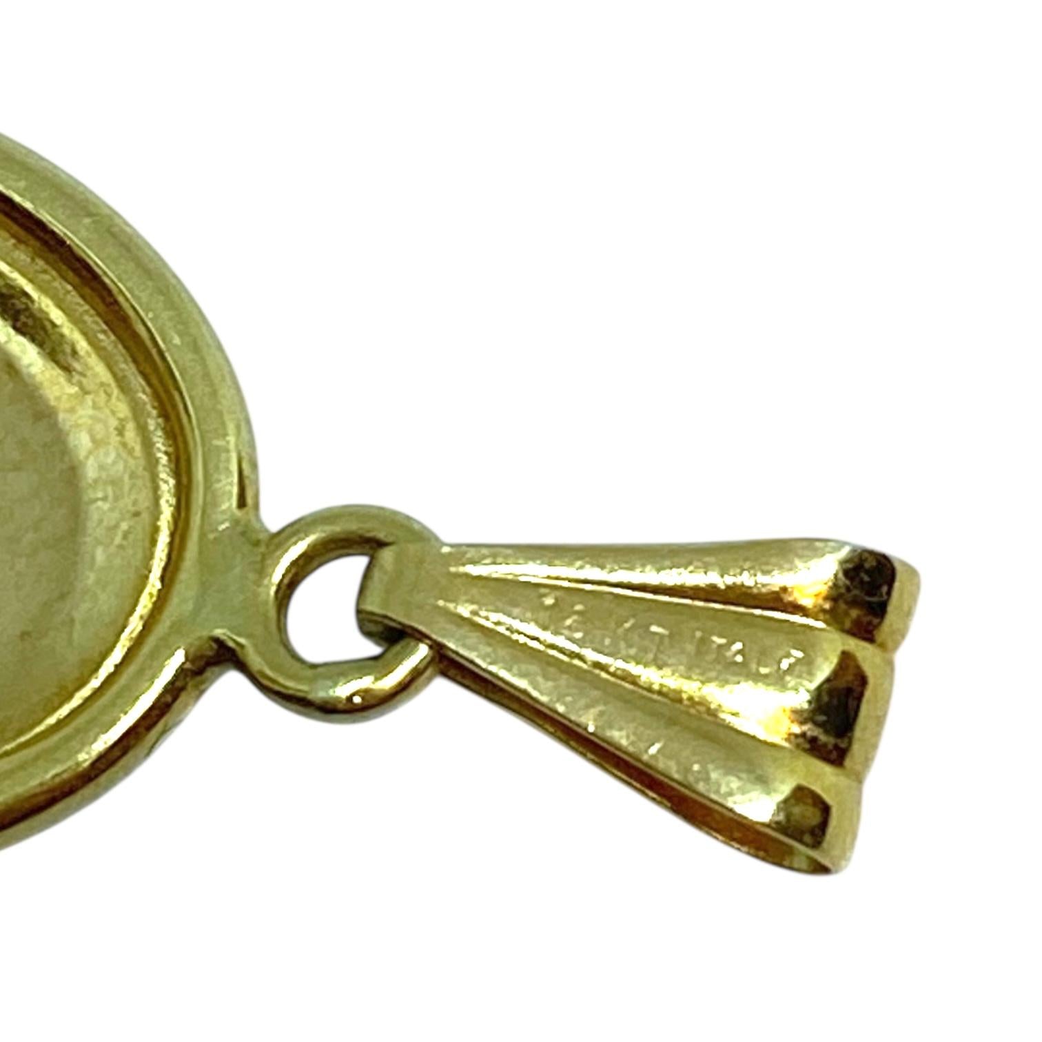 Crafted in 18K yellow gold and platinum, the pendant features an intricately detailed relief of a young female profile. The central platinum medallion is framed by a smooth, polished gold border, creating a striking contrast. The pendant's bail is designed to accommodate a variety of chain styles.